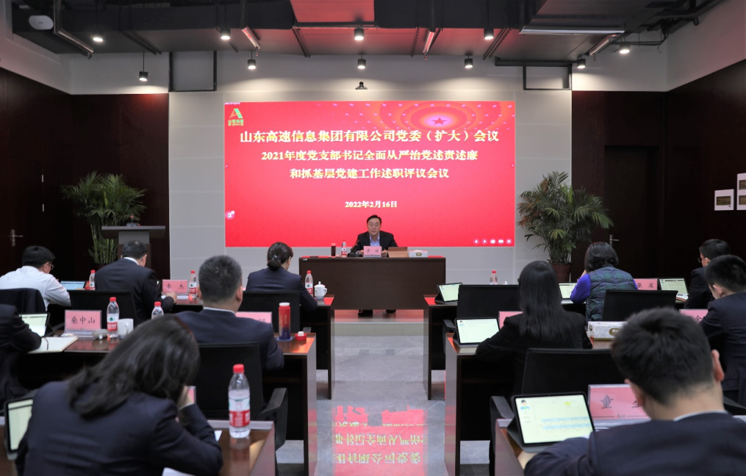 2月16日,山东高速信息集团召开党委(扩大)会议暨2021年度党支部书记全面从严治党述责述廉和抓基层党建工作述职评议会议。党委书记、董事长景峻主持会议并讲话。