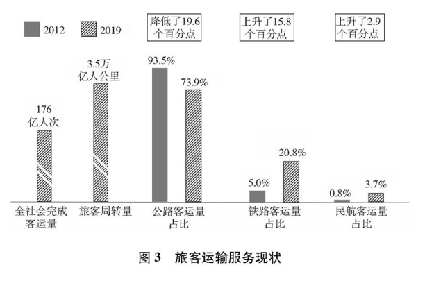 公众高品质出行需求逐步满足。旅客运输专业化、个性化服务品质不断提升,人们对“美好出行”的需求得到更好满足,出行体验更加方便、快捷、舒适、温暖。以道路运输为基础,高铁、民航为主要发展方向的出行服务体系更加完善,客运结构持续优化,中长距离客流逐步从公路转向高铁和民航。截至2019年底,动车组列车累计发送旅客120亿人次,占铁路旅客发送量的比重由2007年的4.5%增长到65.4%。春节、国庆等重要节庆日大规模客流的服务保障能力显著提升,人们不仅能够“说走就走”,而且走得“舒适、优雅、惬意”,“人享其行”的期盼逐步成为现实。