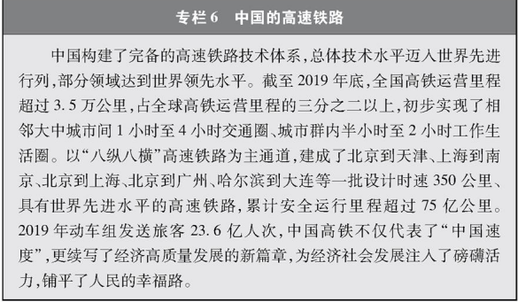 应对突发公共事件处置能力显著提升。科学高效应对各类突发公共事件,健全工作体系,提升应急能力。新冠肺炎疫情发生后,中国果断做出“一断三不断”(注7)部署,适时推出铁路“七快速”(注8),公路“三不一优先”(注9),水运“四优先”(注10),民航客运“五个一”(注11)、货运“运贸对接”(注12)以及邮政“绿色通道”等政策措施,一方面全力阻断病毒通过交通工具传播,另一方面保障全国各地应急物资运输和人民生活需求,为打赢疫情防控人民战争、总体战、阻击战提供了有力支撑。