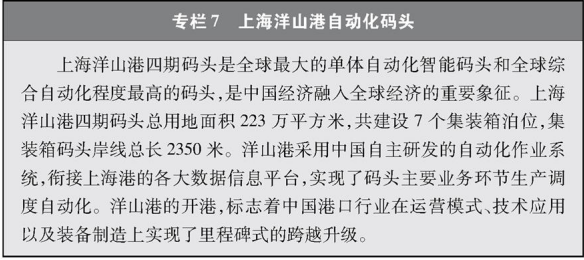 交通装备技术取得重大突破。瞄准世界科技前沿发展“国之重器”,交通运输关键装备技术自主研发水平大幅提升。具有完全自主知识产权的“复兴号”中国标准动车组实现世界上首次时速420公里交会和重联运行,在京沪高铁、京津城际铁路、京张高铁实现世界最高时速350公里持续商业运营,智能型动车组首次实现时速350公里自动驾驶功能;时速600公里高速磁浮试验样车、具备跨国互联互通能力的时速400公里可变轨距高速动车组下线。盾构机等特种工程机械研发实现巨大突破,最大直径土压平衡盾构机、最大直径硬岩盾构机、最大直径泥水平衡盾构机等相继研制成功。节能与新能源汽车产业蓬勃发展,与国际先进水平基本保持同步。海工机械特种船舶、大型自动化专业化集装箱成套设备制造技术领先世界,300米饱和潜水取得创新性突破。C919大型客机成功首飞。支线客机ARJ21开始商业运营。快递分拣技术快速发展。远洋船舶、高速动车组、铁路大功率机车、海工机械等领跑全球,大型飞机、新一代智联网汽车等装备技术方兴未艾,成为中国制造业走向世界的“金名片”。