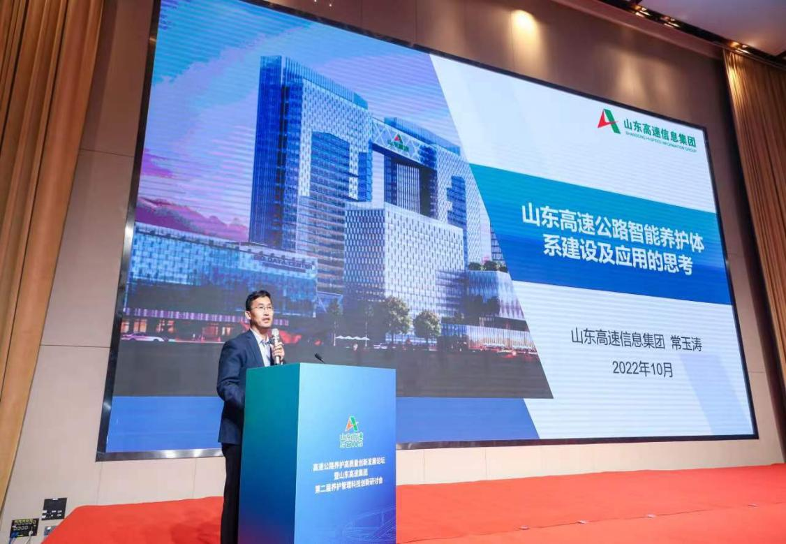 在主题论坛上,信息集团技术专家常玉涛作了题为《山东高速公路智能养护体系建设及应用的思考》的报告,详细介绍了“一图、一库、一平台、多应用”为一体的智能养护管理体系建设应用情况,总结分享了建设经验,展望了智能养护未来前景。
