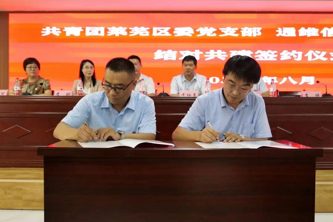 活动中,共青团济南市委副书记孙华、莱芜区委副书记于炳基共同为“青春社区”志愿服务站揭牌。信息集团党委副书记、董事李彬代表通维公司与莱芜区凤城街道结对“青春社区”志愿服务行动,共同推动“青春社区”平台建设、青年共治、志愿服务等常态化活动。通维公司党支部书记马亚栋与共青团莱芜区委副书记李帅签订《党支部结对共建协议》。