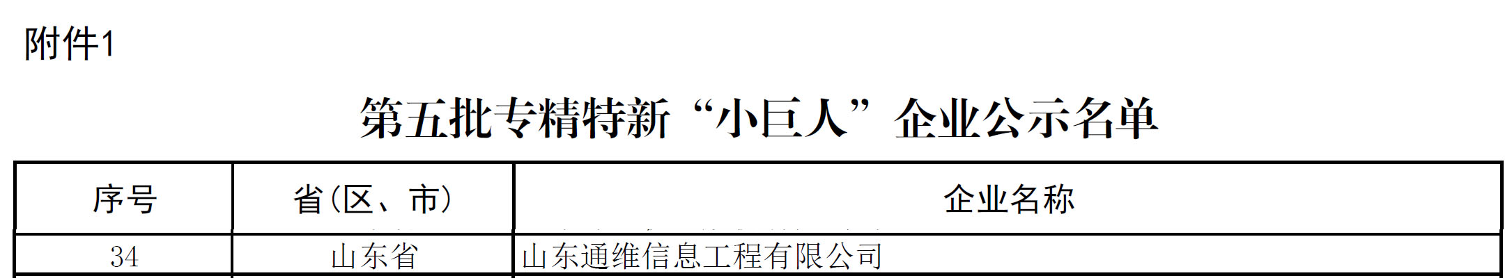 近日,国家工业和信息化部对第五批专精特新“小巨人”企业进行了评选,通维公司成功入选。